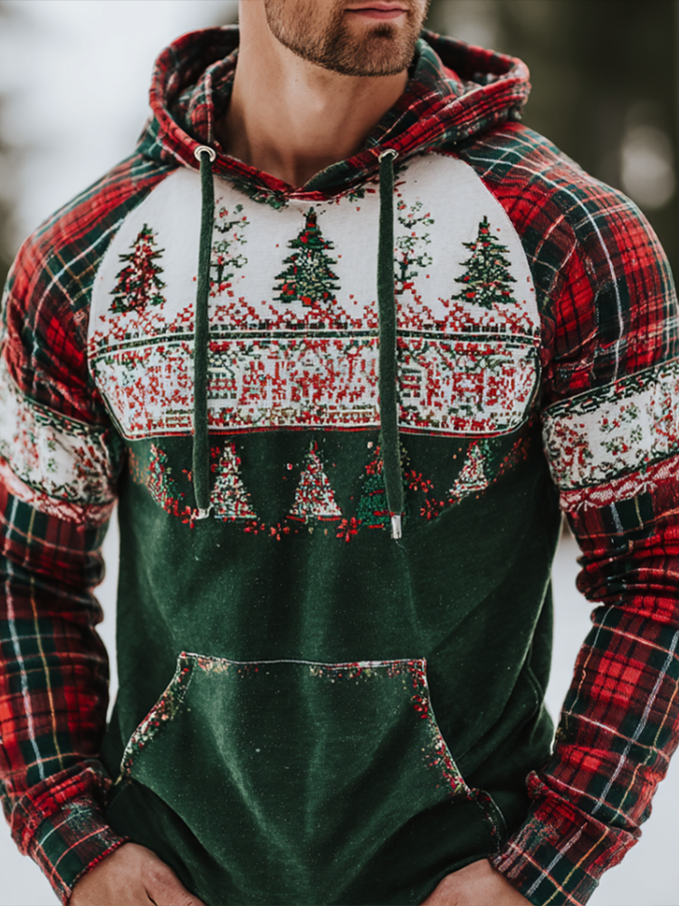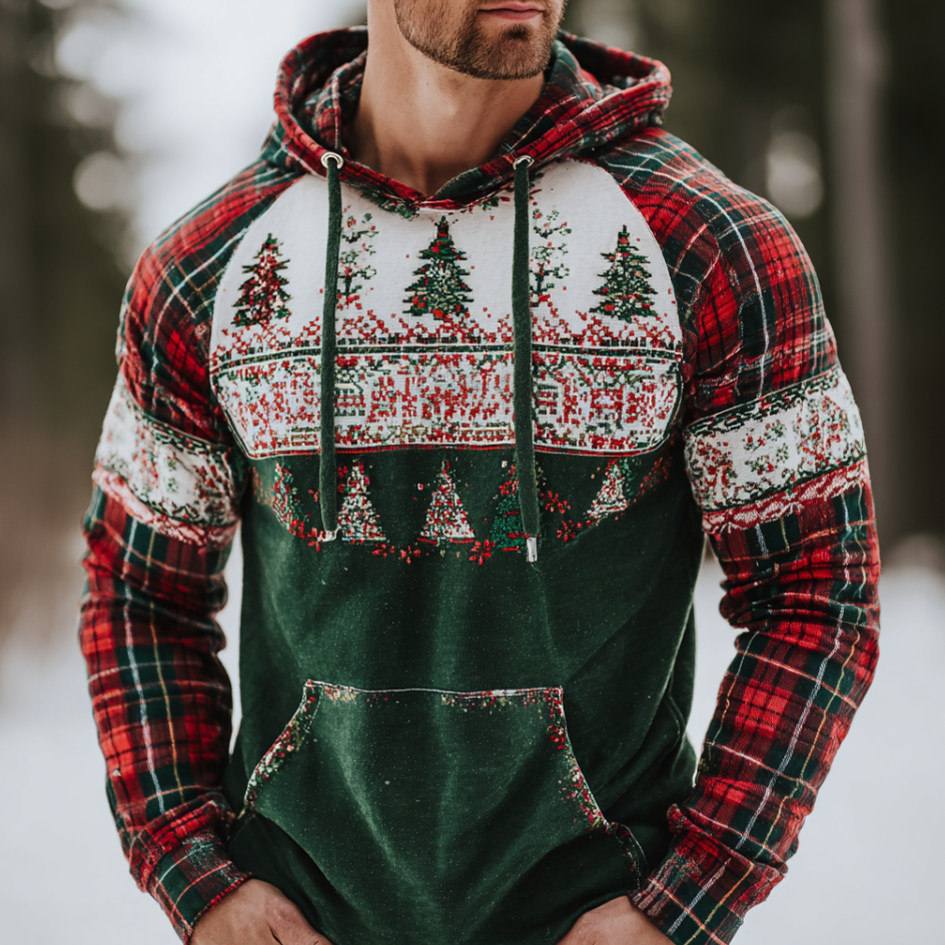 Simpfit Weihnachten Retro Color-blocked Herren Kapuzen Sweatshirt